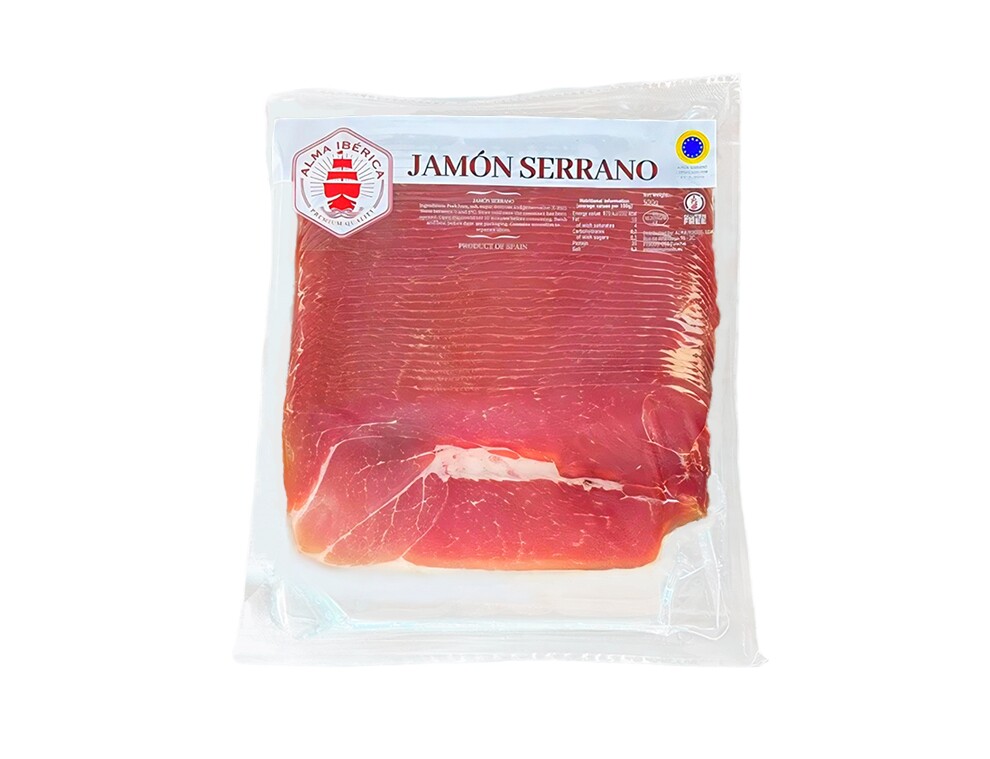 Описание: Хамон Серрано в нарезке в вакуумной упаковке. Заводская упаковка. Обладает приятным вкусом, в меру соленый.