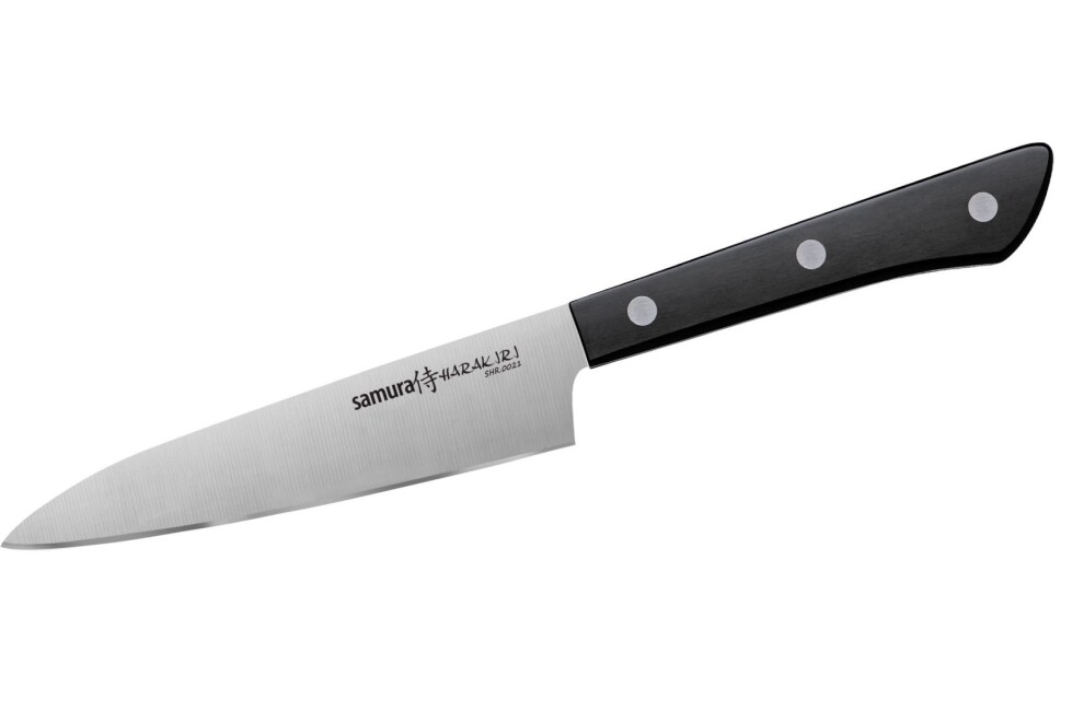 Описание: Универсальный нож Samura предназначен для нарезки фруктов, овощей и сыров. Эта модель оснащена лезвием длиной 12 см и невероятно удобной эргономичной рукоятью. Данный нож способен выполнить большой спектр задач при готовке. Важно отметить, что его возможности не безграничны, не пытайтесь резать им чрезвычайно большие продукты!